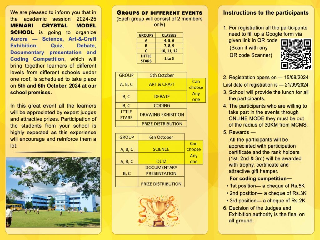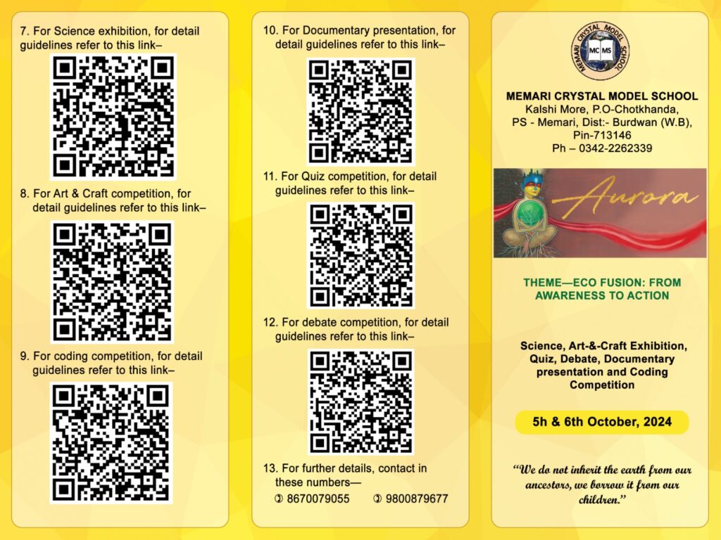 AURORA – 5th & 6th October,2024 -Theme – Eco Fusion: From Awareness to Action. Science , Art-&-Craft Exhibition, Quiz, Debate, Documentary presentation and Coding Competition