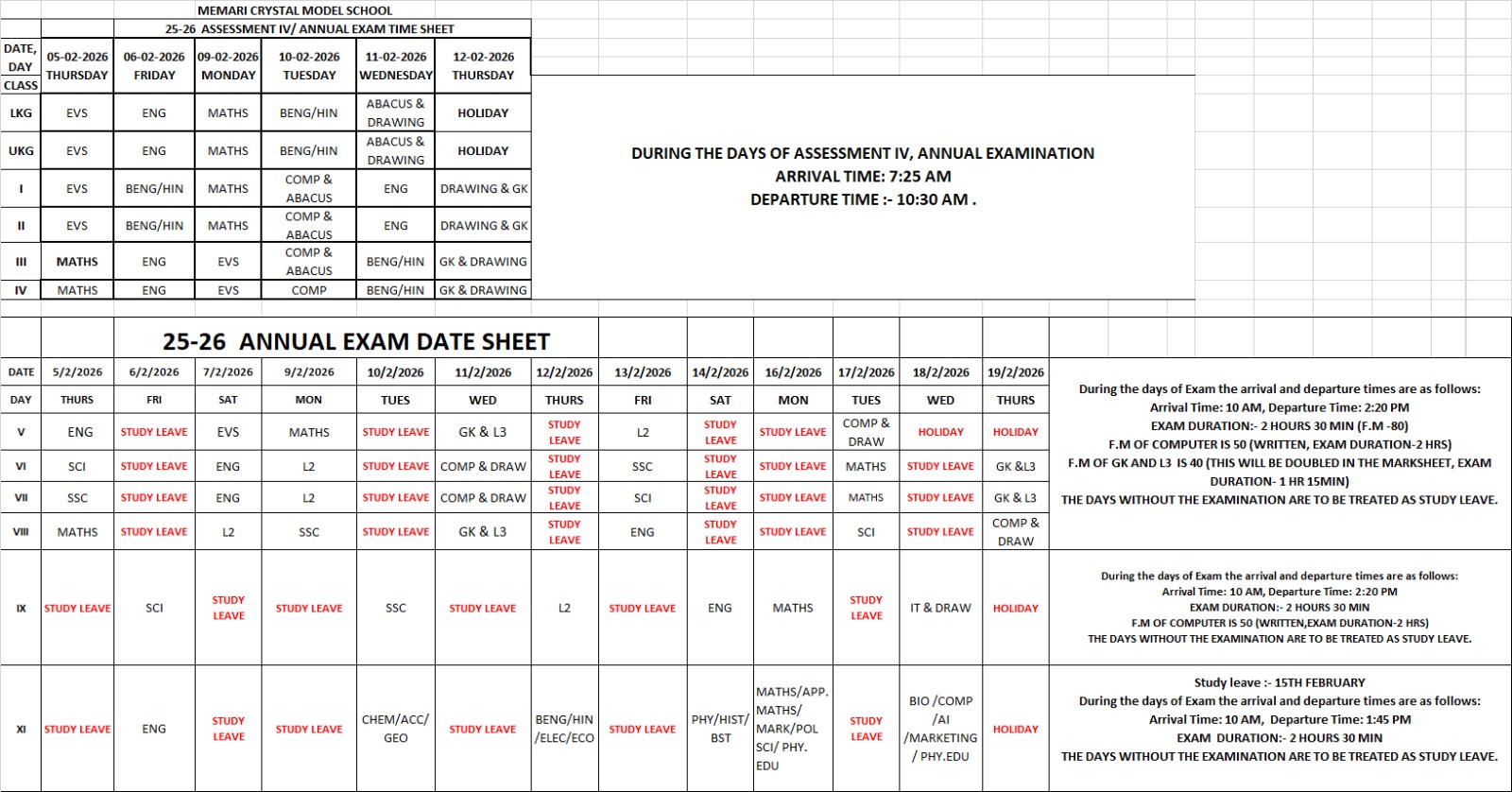 | Date 29/01/26 Annual Exam Time Table 2025-26 Download Time Table |